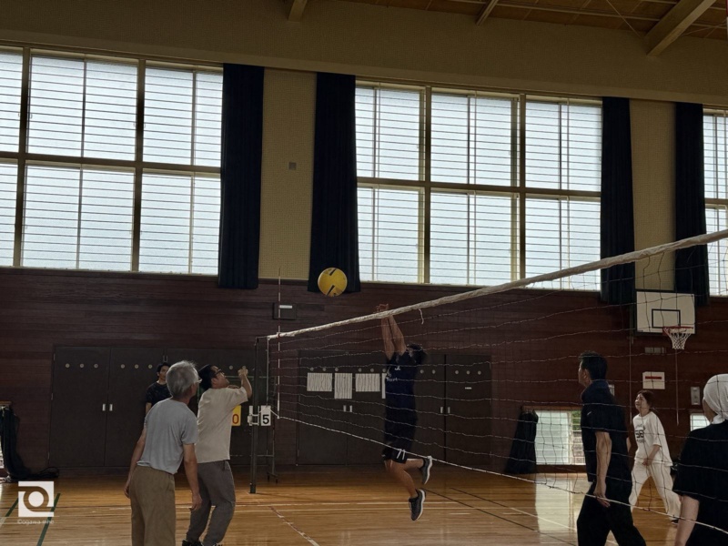 今年の種目はソフトバレー。ちょうどこのタイミングで開催されている世界バレー選手権を意識し、社員たちも白熱したプレーを展開しました。社長や副社長をはじめ、年齢や役職を超えた4チームが対抗戦を行い、ボールを追いかける真剣勝負で盛り上がりました。