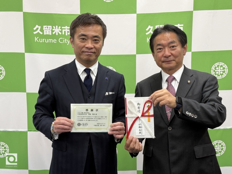 2026年3月25日、オガワ機工は久留米市の理科教育基金へ100万円の寄付を行いました。